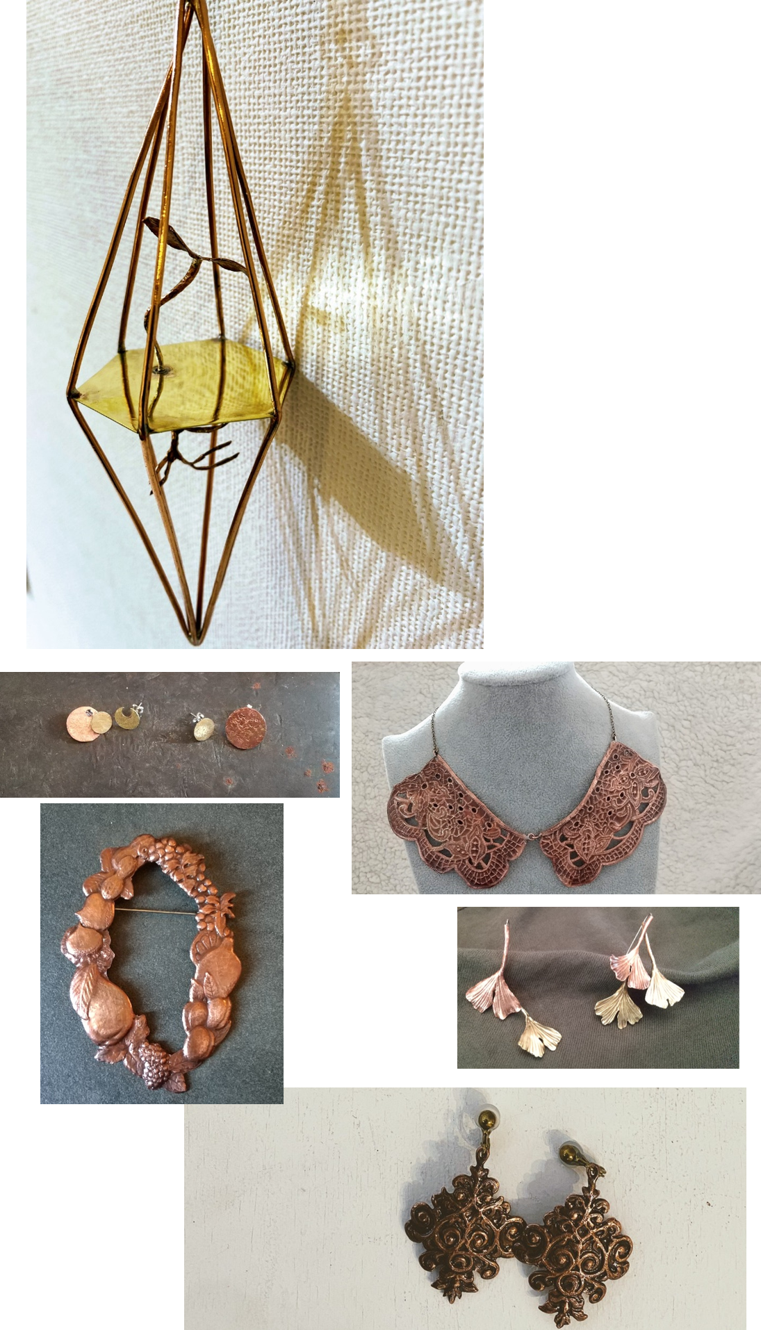 アクセサリーは、私にとって金属に触れるきっかけとなった金工との出会いです。 私の中に燃え盛るやりたい事と表現したい事を、小さな作品の中にもりもりに詰め込みました。